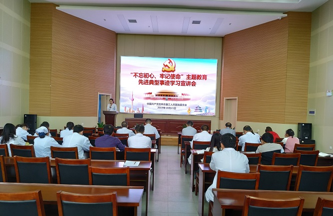 2019年10月23日,市三院黨委組織開展“不忘初心、牢記使命”主題教育先進(jìn)典型事跡學(xué)習(xí)宣講會(huì),樹身邊典型,汲取榜樣力量,會(huì)議由醫(yī)院黨委委員王正馬主持,全體黨員干部參加宣講會(huì)。