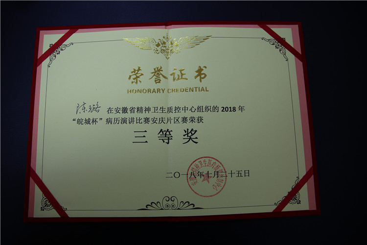 2018年“皖城杯”病歷演講比賽安慶片區(qū)三等獎(jiǎng)(陳璐)