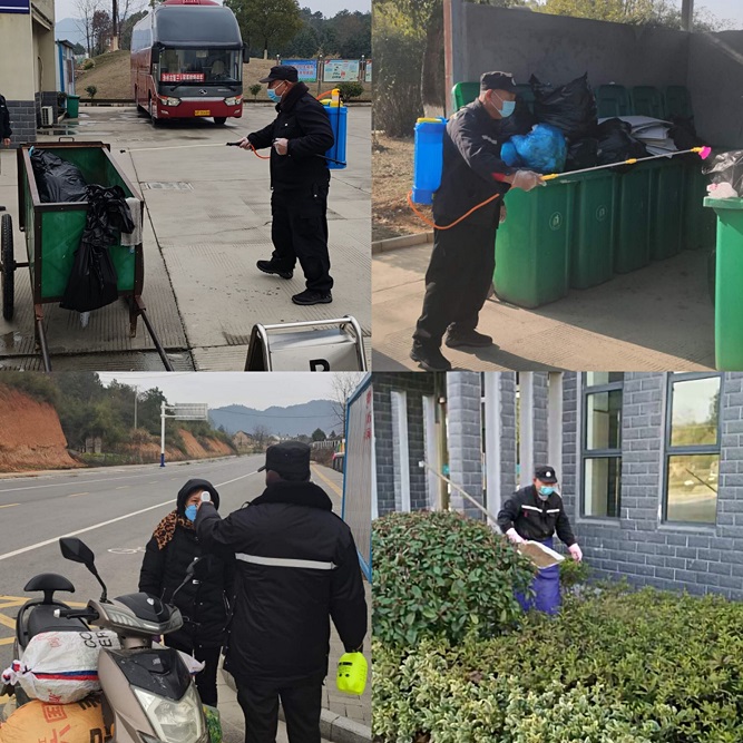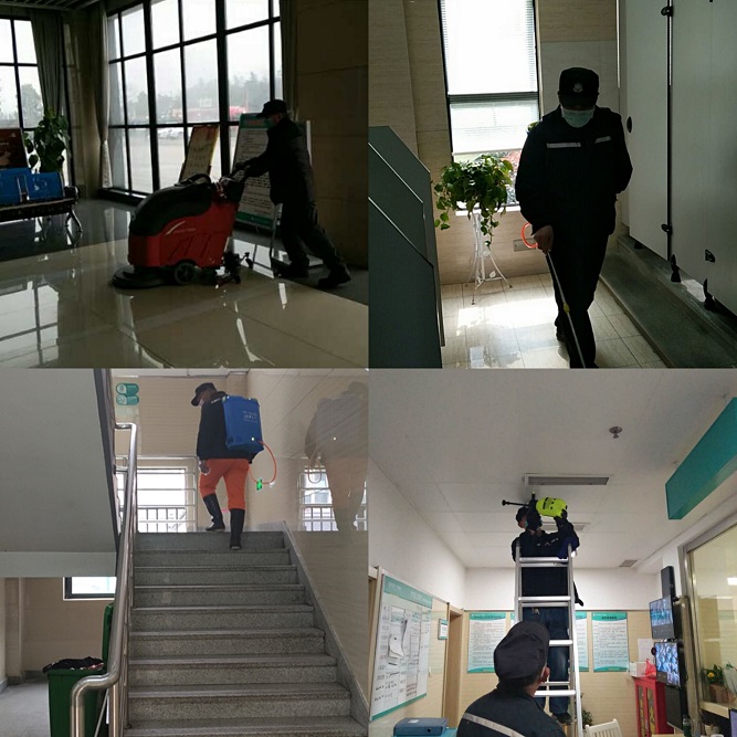 治療一線在醫(yī)院,防控一線在物業(yè)。疫情發(fā)生以來(lái),物業(yè)公司高度重視,管理人員帶頭放棄休假,員工紛紛提前上崗,積極組織人力、物力協(xié)調(diào)各方資源,周密部署、有序推進(jìn)。自大年三十以來(lái),物業(yè)公司管理人員、服務(wù)人員始終堅(jiān)持在一線為患者及其家屬、醫(yī)護(hù)職工提供全方位、不間斷的安全防護(hù),嚴(yán)防突發(fā)事件發(fā)生。物業(yè)公司始終嚴(yán)格把控醫(yī)院重點(diǎn)公共區(qū)域、衛(wèi)生間、電梯間內(nèi)外、樓梯、門診導(dǎo)診臺(tái)、辦公場(chǎng)所、會(huì)議室等區(qū)域的消殺工作,堅(jiān)持每天2次進(jìn)行全面消毒工作,并張貼各類溫馨提示,同時(shí)利用周末時(shí)間對(duì)院內(nèi)所有醫(yī)療設(shè)備設(shè)施進(jìn)行全面消毒,安排專人對(duì)污水處理站、配電房、中心氧站、醫(yī)療廢棄物暫存點(diǎn)進(jìn)行專業(yè)的消殺工作,確保消毒無(wú)死角。在醫(yī)院大門口設(shè)置體溫檢測(cè)設(shè)施,協(xié)助醫(yī)務(wù)人員對(duì)前來(lái)就診患者及家屬耐心詢問(wèn)、體溫檢測(cè)并做好登記記錄,嚴(yán)把入院的第一道關(guān)卡。