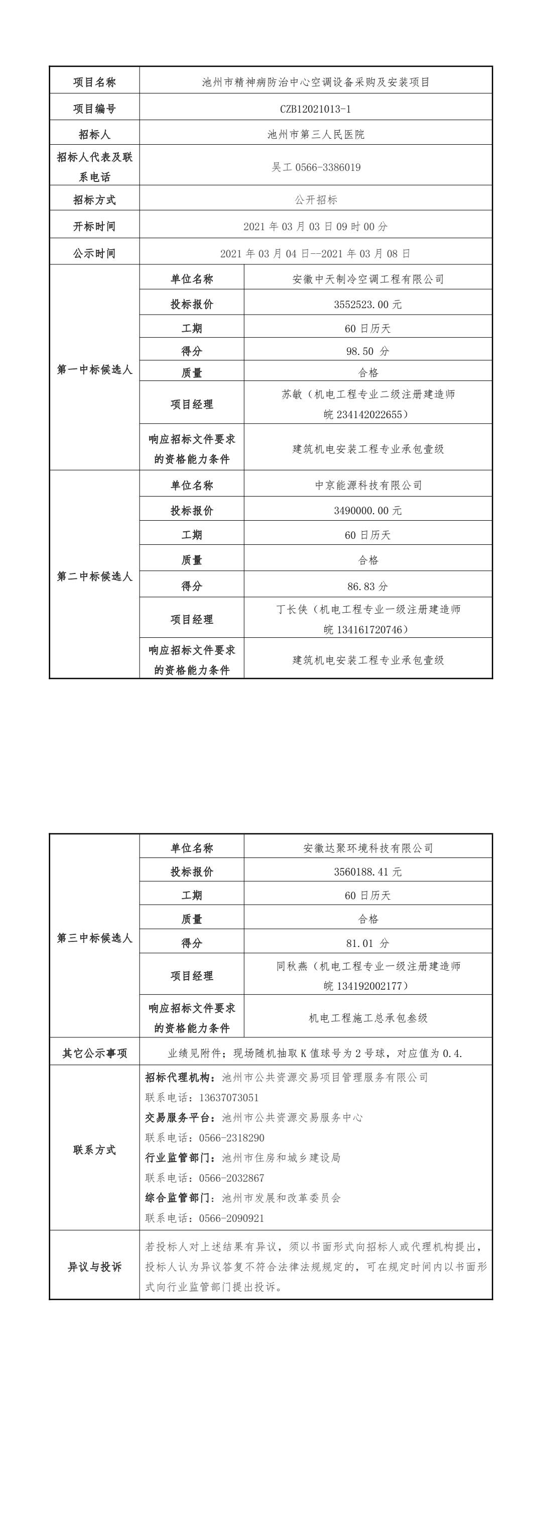 池州市精神病防治中心空調(diào)設(shè)備采購及安裝項(xiàng)目中標(biāo)候選人公示