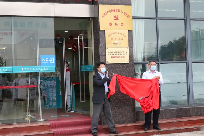 會前,唐達(dá)亮、胡越在醫(yī)院門診樓前進(jìn)行了精神專科醫(yī)聯(lián)體揭牌儀式。