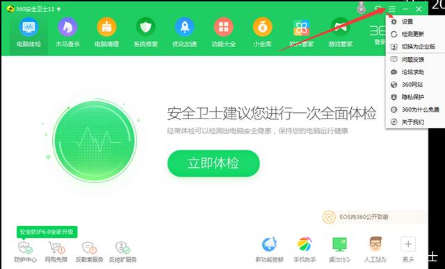 解決方法:可以安裝最新版360安全衛(wèi)士開啟“黑客入侵防護(hù)”功能,可有效防護(hù)遠(yuǎn)程爆破行為,無需關(guān)閉端口、共享等,詳情見下1),點(diǎn)擊右上角“三橫杠”打開菜單,點(diǎn)擊“設(shè)置”按鈕