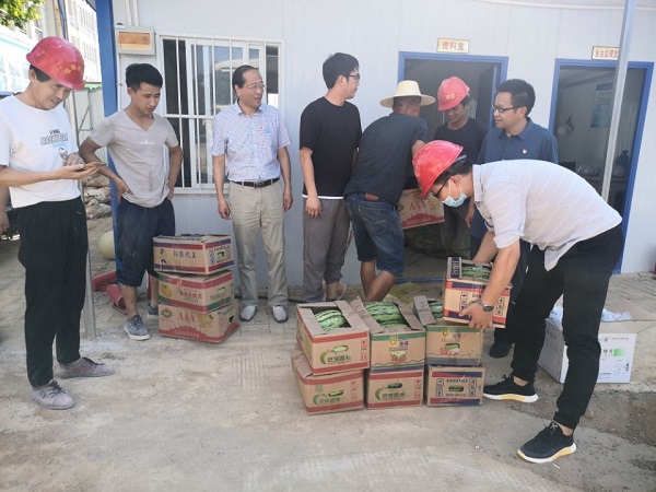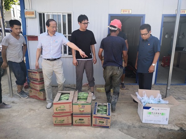 7月13日下午,市第三人民醫(yī)院黨委專職副書記、紀(jì)委書記王華偉,黨委委員宋輝攜相關(guān)科室人員深入市三院二期工程項(xiàng)目施工現(xiàn)場,對暑期堅(jiān)守崗位、辛勤工作的一線建筑工人表示親切的慰問,并為他們送上西瓜、藥品等防暑降溫用品。
