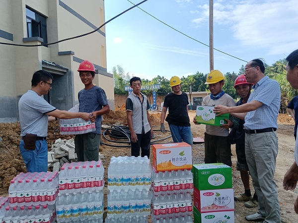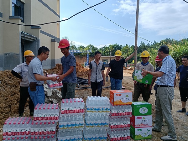 7月22日下午,市三院副院長(zhǎng)劉隆盛、黨委委員宋輝攜相關(guān)科室人員,看望慰問(wèn)堅(jiān)守在市三院二期工程項(xiàng)目施工現(xiàn)場(chǎng)的一線工人,為他們送上飲料、礦泉水等防暑降溫物品。