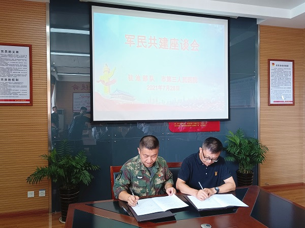 最后,駐池某部相關(guān)領(lǐng)導(dǎo)同市三院副院長(zhǎng)劉隆盛簽訂了《軍民共建協(xié)議書(shū)》。