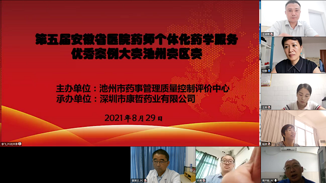 8月29午,第五屆安徽省醫(yī)院藥師個體化藥學(xué)服務(wù)優(yōu)秀案例大賽池州分區(qū)賽成功舉行,由于疫情防控要求,本次比賽采取線上賽的形式舉行。來自全市的15名優(yōu)秀藥師,憑借扎實的藥學(xué)功底、嚴謹?shù)陌咐治?、制作精美的課件和精彩自信的演講,在云端展開了激烈的角逐,最終我院臨床藥師吳佳俊以優(yōu)異成績獲得一等獎。