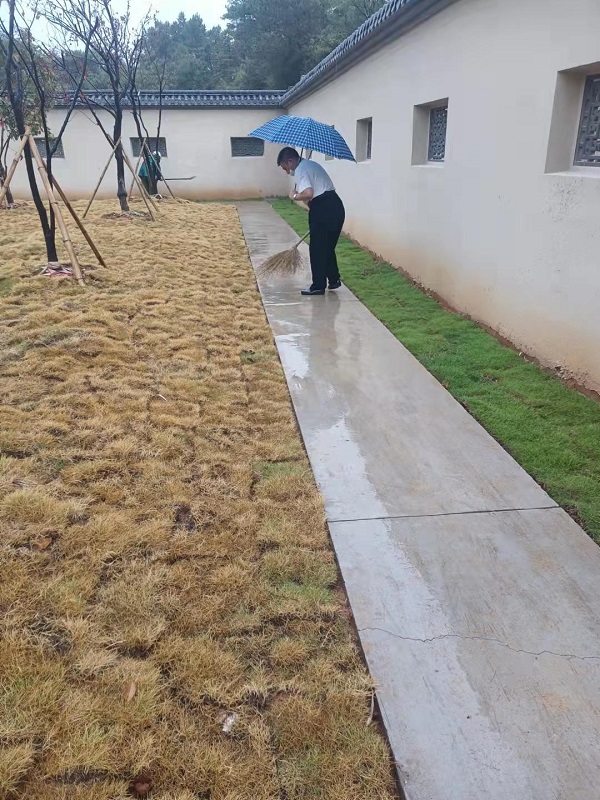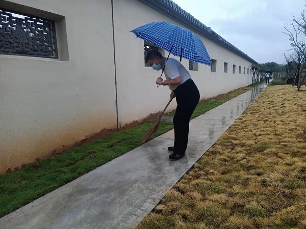 伴隨著淅淅瀝瀝的秋雨,健康步道上的積水、淤泥、落葉殘枝也接踵而至,二期施工現(xiàn)場的建筑垃圾也隨意散落一地,給醫(yī)院整潔靚麗的形象大打折扣,院黨委書記、院長唐達(dá)亮帶領(lǐng)物業(yè)一行人員手拿掃帚,垃圾袋等工具,通過人工清掃、沖洗等方式對這些影響醫(yī)院形象的環(huán)境弊病開展整治,經(jīng)過一個多小時揮汗如雨的勞動,路面臟亂差問題實現(xiàn)清零,院容院貌煥然一新,風(fēng)雨中唐院長一行忙碌的身影也成了一道獨特的風(fēng)景線。