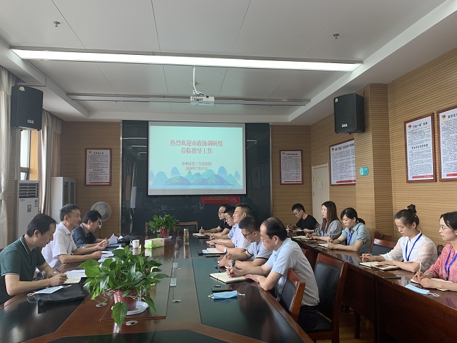 7月17日上午,市政協(xié)副秘書長胡江華、教科衛(wèi)體委主任陳建淮、秘書科科長李小瑜一行3人蒞臨市三院調(diào)研精神衛(wèi)生工作,市三院領(lǐng)導(dǎo)班子及相關(guān)科室負(fù)責(zé)人陪同。