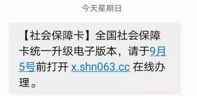 “【社會保障卡】全國社會保障卡統(tǒng)一升級電子版,請于x月x號前打開xxxxxxx(網(wǎng)址)在線辦理。”