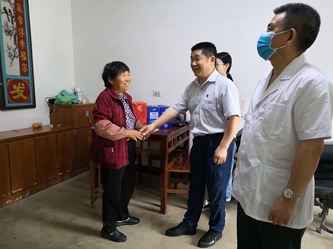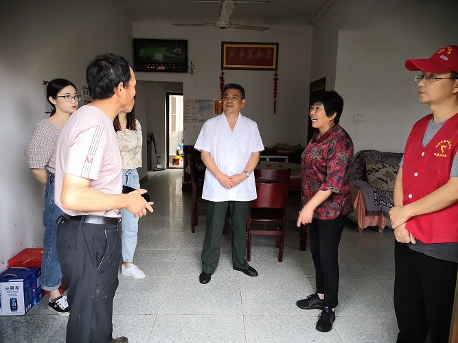 走訪中,唐達(dá)亮分別和幫扶對象余德貴、余美清(聾?。┘捌浼胰擞H切交談,詳細(xì)了解他們的身體狀況和家庭困難情況,鼓勵他們要充滿信心,努力克服自身困難,積極治療自身疾病,增強(qiáng)新冠肺炎疫情防控意識,加強(qiáng)膳食營養(yǎng),提高免疫力,盡早實(shí)現(xiàn)健康脫貧。同時為他們送去水果、牛奶、慰問金等慰問品,祝愿他們度過一個吉祥安康的端午佳節(jié)兩位幫扶對象均表示感謝市三院一行的幫扶善舉,一定會積極配合國家脫貧政策,做到健康脫貧。活動現(xiàn)場,市三院青年醫(yī)護(hù)人員還為兩位幫扶對象和家庭成員進(jìn)行了免費(fèi)健康體檢,建立了健康檔案,并對高血壓健康教育、夏季飲食衛(wèi)生、失眠及焦慮抑郁等衛(wèi)生健康知識進(jìn)行了詳細(xì)普及指導(dǎo)。