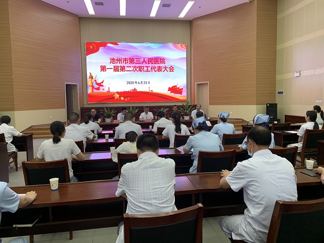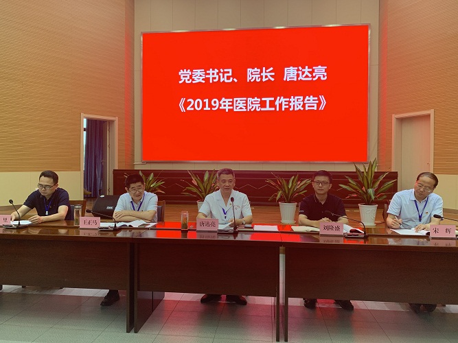 6月23日下午,市三院一屆第二次職代會在門診四樓多功能會議室隆重召開,院領導班子成員、職工代表近40人參加會議。院黨委書記、院長唐達亮出席會議作《2019年度醫(yī)院工作報告》并致辭,院黨委委員、職代會主席王正馬主持會議并宣讀大會決議。