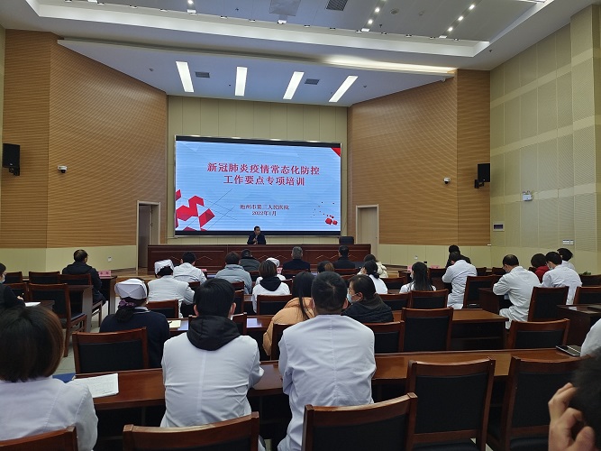 為做好新冠肺炎疫情防控工作,進一步提升醫(yī)院疫情防控工作水平,1月19日下午,市三院組織全院工作人員(含物業(yè)、食堂等工勤人員)參加全市醫(yī)療機構(gòu)新冠肺炎疫情常態(tài)化防控工作要點線上培訓(xùn)。