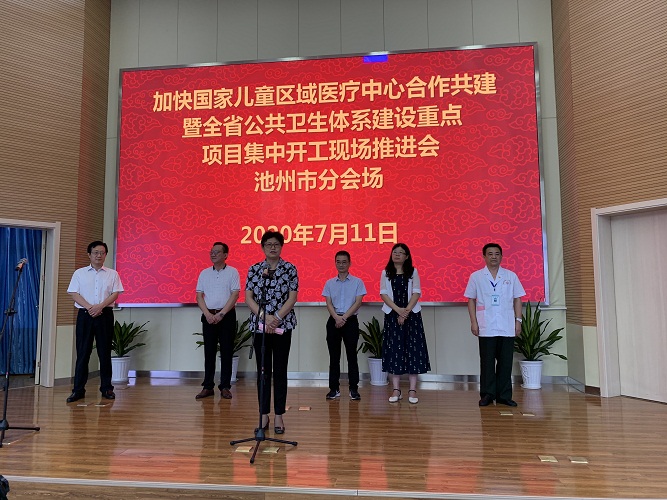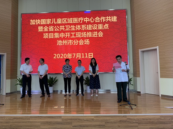 7月11日上午9點(diǎn)45分,全省同步舉行加快國(guó)家兒童區(qū)域醫(yī)療中心合作共建暨全省公共衛(wèi)生體系建設(shè)重點(diǎn)項(xiàng)目集中開(kāi)工現(xiàn)場(chǎng)推進(jìn)會(huì),池州市分會(huì)場(chǎng)設(shè)在市第三人民醫(yī)院二期項(xiàng)目現(xiàn)場(chǎng),市政府副市長(zhǎng)賈瑄出席會(huì)議,并宣布池州市精神衛(wèi)生防治中心暨全市公共衛(wèi)生體系建設(shè)重點(diǎn)項(xiàng)目集中開(kāi)工。