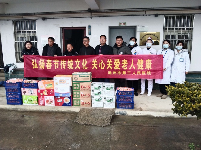 1月26日,市第三人民醫(yī)院副院長劉隆盛率領(lǐng)醫(yī)護業(yè)務(wù)骨干一行8人,赴涓橋、里山敬老院開展“弘揚春節(jié)傳統(tǒng)文化,關(guān)心關(guān)愛老人健康”義診慰問活動,在為老人們送上牛奶、面包、水果等慰問品的同時也送去了節(jié)日的問候和祝福。