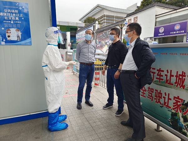 316下午,市三院黨委專職副書記、紀(jì)委書記王華偉,副院長(zhǎng)劉隆盛,黨委委員宋輝等一行來(lái)到高鐵站疫情防控卡點(diǎn),看望慰問(wèn)在高鐵站疫情防控一線的執(zhí)勤醫(yī)務(wù)人員。