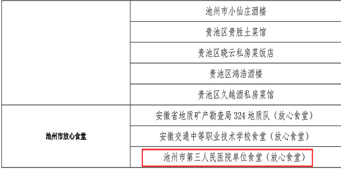 近日,池州市市場(chǎng)監(jiān)督管理局公布了池州市餐飲質(zhì)量安全放心食堂名單,我單位食堂榮獲“放心食堂”稱號(hào)。