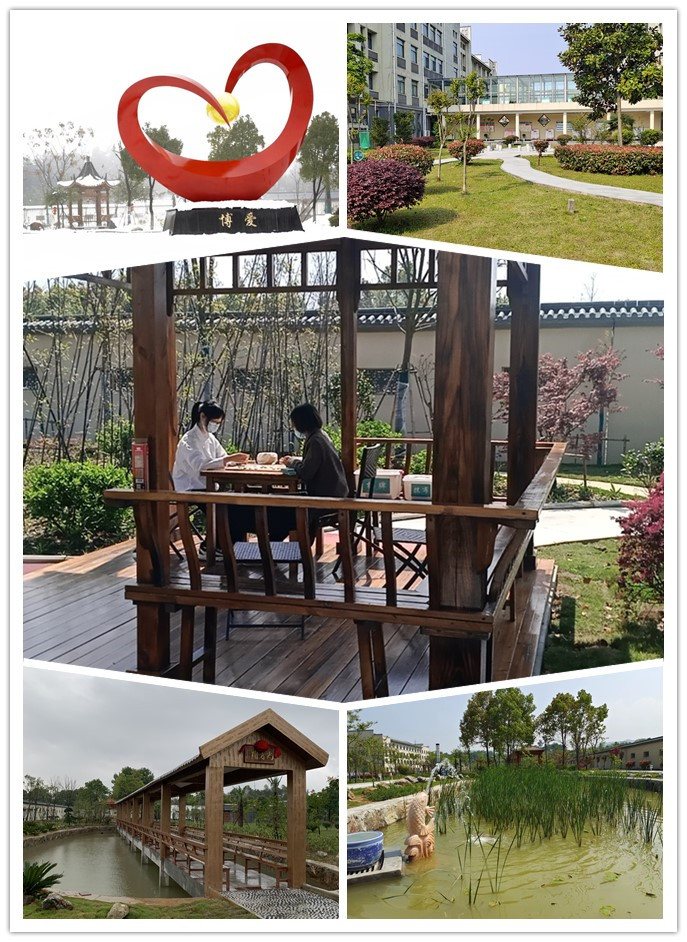 醫(yī)院清溪廣場佇立的“博愛”雕塑以“心”為題材創(chuàng)作,旨在向人們宣揚(yáng)愛、展示愛、傳遞愛,愿世界處處充滿愛!醫(yī)院公園四季花團(tuán)錦簇,自然景觀、人文景觀比比皆是,賞心悅目,亭臺樓閣、特色建筑鱗次櫛比。這里有各種各樣的植物,有高大的樹木,也有矮小的花草,一簇一簇的灌木。沿著小徑行進(jìn)而入,兩側(cè)柳樹依依,微風(fēng)習(xí)習(xí),頓感愜意。行至水榭和池塘邊,一片小型的人工水簾映入眼眸,隨著鯉魚噴泉清涼的水流不斷傾瀉,發(fā)出悅耳的聲音,仿佛也在吟唱不朽的韻律。每當(dāng)清晨或傍晚,成群結(jié)對的人們行走在近千米的蜿蜒健康步道,或交談,或戲鬧,或依亭對弈,仿佛人在畫中。籃球場上更是熱鬧非凡,只見有人如魔術(shù)般抓住已經(jīng)飛到頭前的籃球,然后雙手一沉,握著球放在腰間,接著右手單獨(dú)掄起了籃球,劃出一個美麗的半圈,側(cè)著身將籃球砸進(jìn)了籃筐!夜色降臨,醫(yī)院漸漸恢復(fù)了平靜,公園內(nèi)的燈光星星點(diǎn)點(diǎn),樹木影影綽綽。乍一看,與東側(cè)的蓮花山,西側(cè)的車山馬山,身后的萬羅山,遠(yuǎn)處深黑的六峰山、太婆山等,一幅濃重的潑墨山水畫靜靜地鋪在你的面前。然而,雨后清新自然的公園,更是讓你留連忘返。