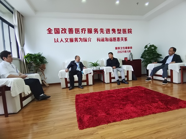 童志禮等相關(guān)科室人員陪同蘇理事長一行人參觀了我院的一期、二期工程和院容院貌,介紹了我院的基本情況以及發(fā)展前景,蘇理事長對三院的管理以及環(huán)境等贊不絕口,隨后召開了座談會(huì)議。