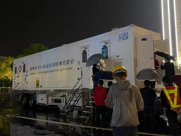 當(dāng)天下午18:30左右,天空下著小雨,我們也到達(dá)了此次的目的地——黃山市屯溪區(qū)。也見到了此次支援的另一組9名隊友,他們是由石臺縣、東至縣、青陽縣和貴池區(qū)組成的貴池區(qū)檢測支援隊。吃過晚飯后,在市疾控萬江民主任的帶領(lǐng)下,配合當(dāng)?shù)睾笄?,冒雨進行檢測車輛的固定、通電、安裝及調(diào)試的所有準(zhǔn)備工作,并由我和劉新宇對新加入的隊友進行簡單的操作培訓(xùn),確保能第一時間進入工作狀態(tài)。由于檢測車所用檢測試劑和當(dāng)?shù)販?zhǔn)備試劑不匹配,導(dǎo)致檢測車無法進入工作狀態(tài),此次領(lǐng)隊萬主任在和當(dāng)?shù)貐f(xié)調(diào)的同時,積極派出包括我在內(nèi)的10名檢測隊員到黃山市人民醫(yī)院新冠核酸檢測基地進行支援,大大的加強該實驗室檢測力量。