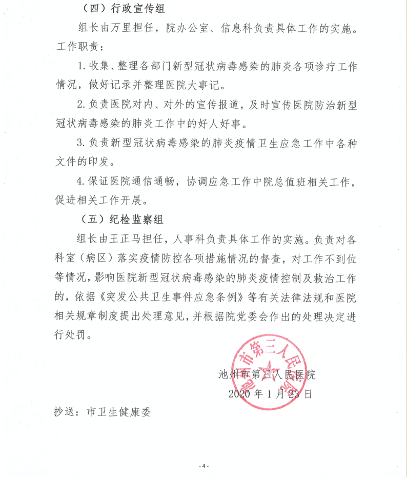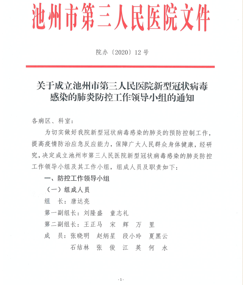 關(guān)于成立池州市第三人民醫(yī)院新型冠狀病毒感染的肺炎防控工作領(lǐng)導(dǎo)小組的通知