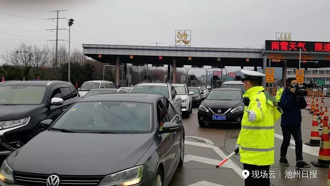 為有效預防和控制新型冠狀病毒感染的肺炎疫情,池州市公安局交警支隊依托高速公路收費站設立10個防疫檢查點,嚴格落實各檢查點警力配備,科學合理安排勤務班次,協(xié)助做好來自重點地區(qū)車輛的攔查、勸返勸阻等工作。同時,針對疫情防控指揮部通報和市民舉報的重點地區(qū)車輛,池州交警支隊指揮中心安排專人24小時值守,查詢車輛信息、軌跡,會同路面大隊攔截查控車輛,配合相關部門核查車輛情況。為避免重復核查重點地區(qū)車輛,池州交警印制“車輛已核查”紙質(zhì)標簽,通過車管所通知定點集中核查和路面流動檢查的形式,對已經(jīng)核查的車輛,及時進行張貼。