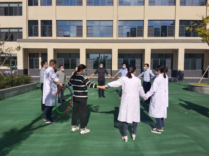 本次活動共開展了傳球接力棒,解手鏈,齊眉棍,旋轉呼啦圈,變形蟲,巧解千千結等游戲。整個活動現(xiàn)場有互動、有幫助,有支持、有鼓勵,時而迸發(fā)出爽朗的笑聲,時而又響起陣陣掌聲……