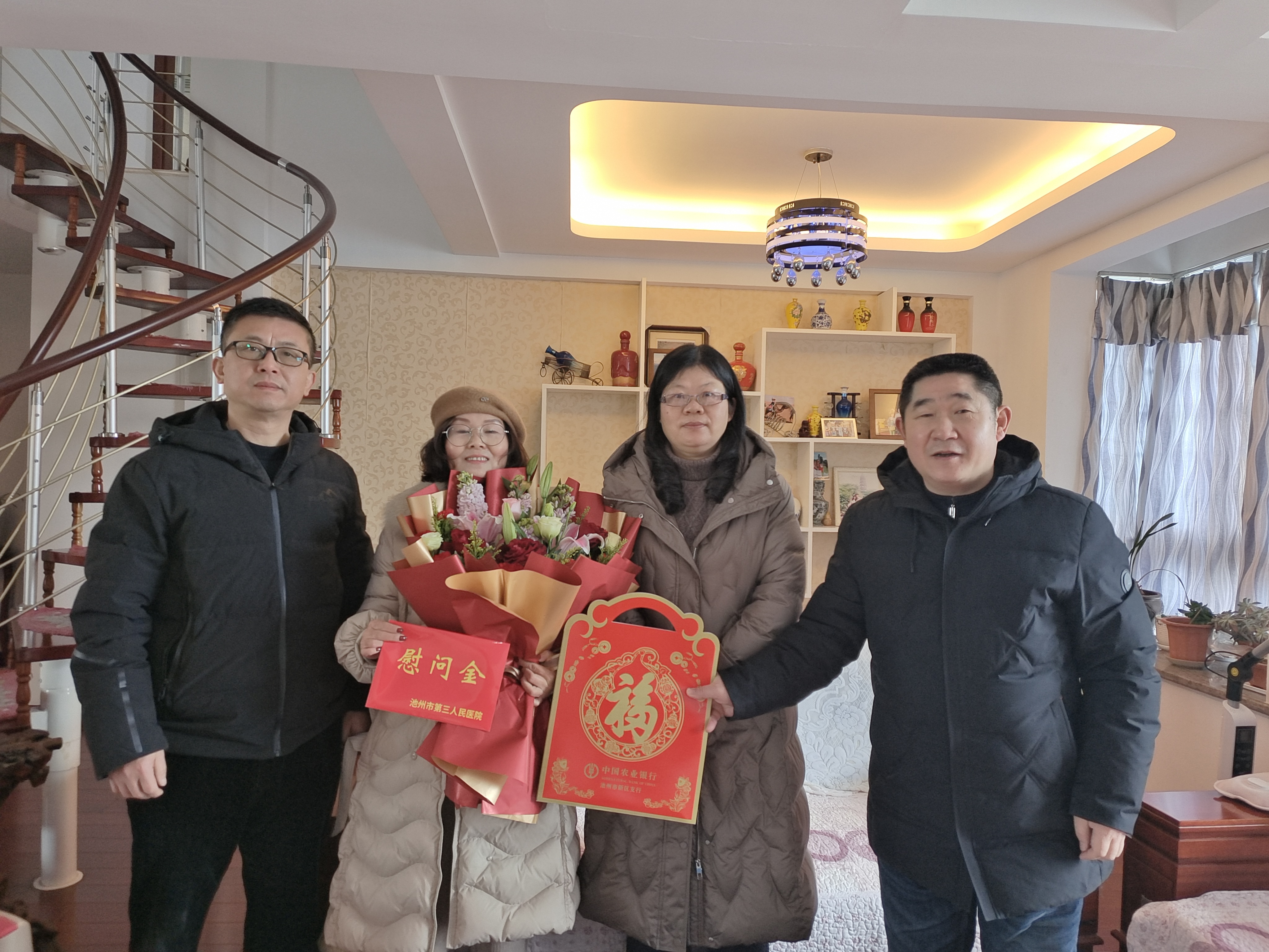 春節(jié)將至,歲寒情深。在2023年春節(jié)即將來臨之際,為做好關心、關愛退休職工的生活,1月17日上午,市第三人民醫(yī)院黨委書記方東霞,院長劉隆盛,黨委委員、工會主席王正馬及相關科室負責人看望慰問了醫(yī)院退休干部職工,向他們送去新春的祝福與問候。