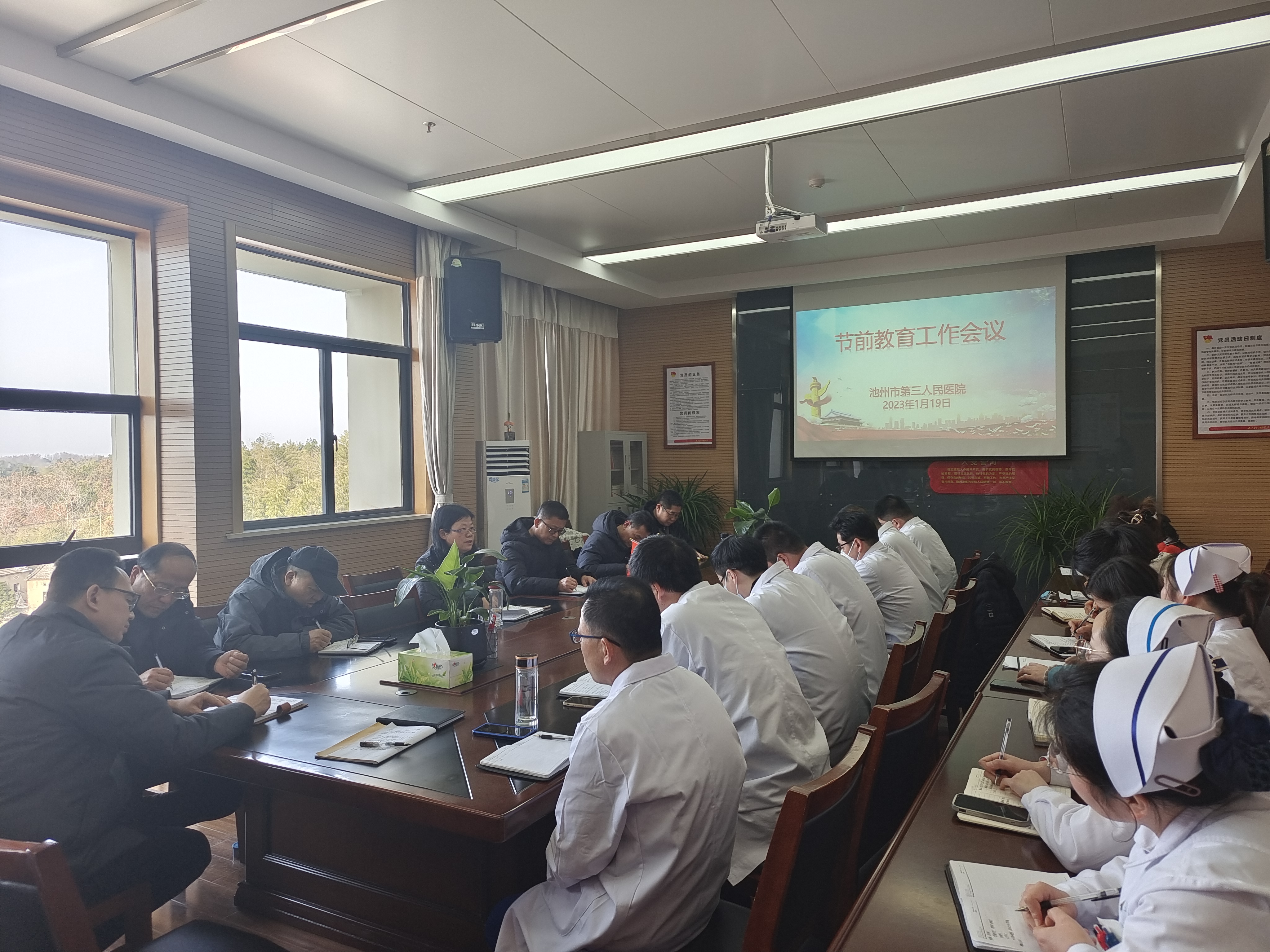 119日下午,市三院召開春節(jié)節(jié)前教育工作會議,在院領(lǐng)導(dǎo)班子成員、各科室負(fù)責(zé)人40余人參加。