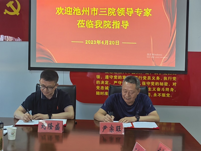 最后,考察組赴青陽(yáng)縣人民醫(yī)院參加醫(yī)聯(lián)體合作協(xié)議簽約儀式,劉隆盛與青陽(yáng)縣人民醫(yī)院院長(zhǎng)尹宗旺代表雙方簽訂了醫(yī)聯(lián)體合作協(xié)議。