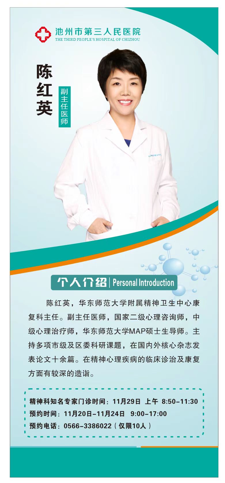 知名專家門診,11月29日華東師范大學(xué)附屬精神衛(wèi)生中心(上海市長(zhǎng)寧區(qū)精神衛(wèi)生中心)康復(fù)科專家來(lái)我院坐診