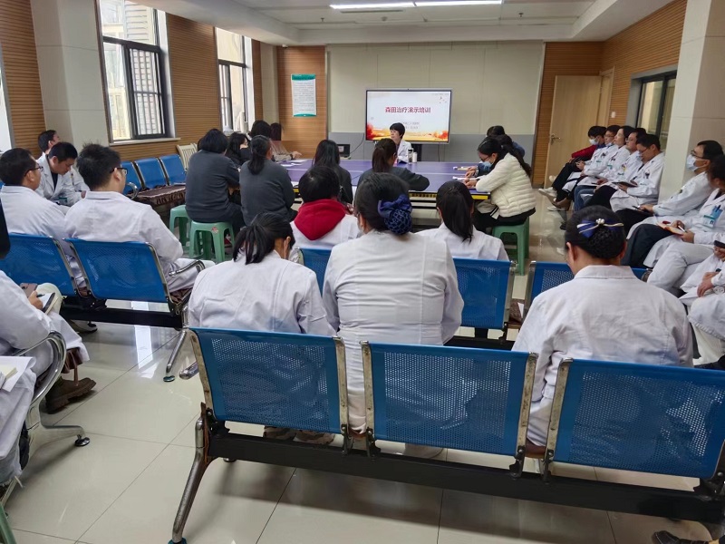 培訓(xùn)期間,陳主任結(jié)合自身豐富的臨床經(jīng)驗(yàn)為參加學(xué)習(xí)的醫(yī)務(wù)人員詳細(xì)講授了“森田治療及內(nèi)觀治療”的理論知識(shí),課程貼近臨床應(yīng)用,涵蓋了森田治療及內(nèi)觀治療的各個(gè)方面。同時(shí)陳主任在現(xiàn)場(chǎng)為25名患者分別進(jìn)行了森田治療及內(nèi)觀治療,并針對(duì)醫(yī)務(wù)人員提出的看法和意見(jiàn),進(jìn)行歸納總結(jié),給予相關(guān)建議?,F(xiàn)場(chǎng)討論熱烈、掌聲不斷,大家紛紛表示受益匪淺,收獲滿滿。