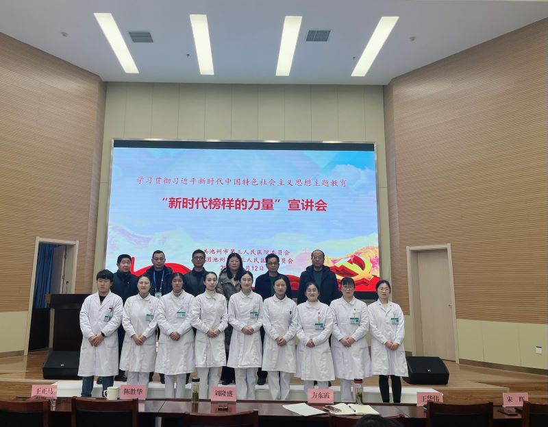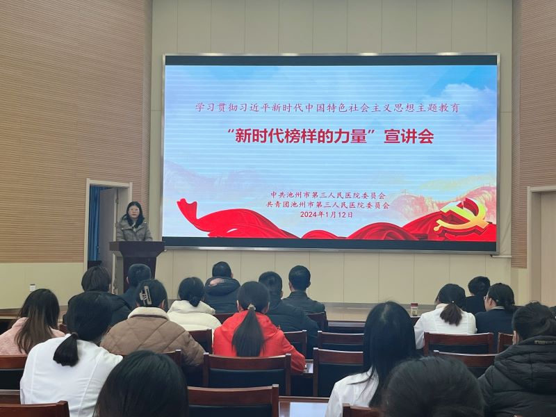 為扎實(shí)推進(jìn)主題教育走深走實(shí),1月12日,市三院黨委舉行了“新時(shí)代榜樣的力量--講述身邊優(yōu)秀職工的先進(jìn)事跡”宣講活動(dòng),推動(dòng)“學(xué)思想、強(qiáng)黨性、重實(shí)踐、建新功”的總要求轉(zhuǎn)化為凝心聚力、攻堅(jiān)克難的思想武器。院黨委書記方東霞參加會(huì)議并發(fā)表了講話,院領(lǐng)導(dǎo)班子成員、全體黨員、團(tuán)員共70余人參加了活動(dòng)。