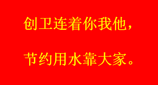 創(chuàng)衛(wèi)連著你我他,節(jié)約用水靠大家。