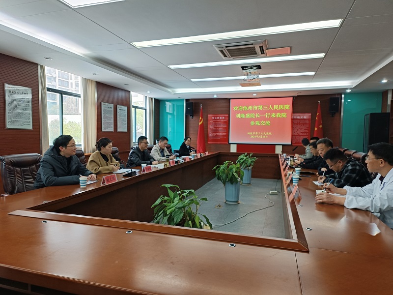 為推進(jìn)三級(jí)醫(yī)院創(chuàng)建工作,提高醫(yī)院管理水平,3月14日下午,院長(zhǎng)劉隆盛攜相關(guān)職能部門(mén)、臨床科室、物業(yè)管理人員一行7人赴銅陵市第三人民醫(yī)院參觀學(xué)習(xí)。銅陵市第三人民醫(yī)院院長(zhǎng)趙來(lái)田、副院長(zhǎng)儲(chǔ)文革、副院長(zhǎng)趙兵及醫(yī)務(wù)科、總務(wù)科、老年病區(qū)負(fù)責(zé)人參加了交流座談。