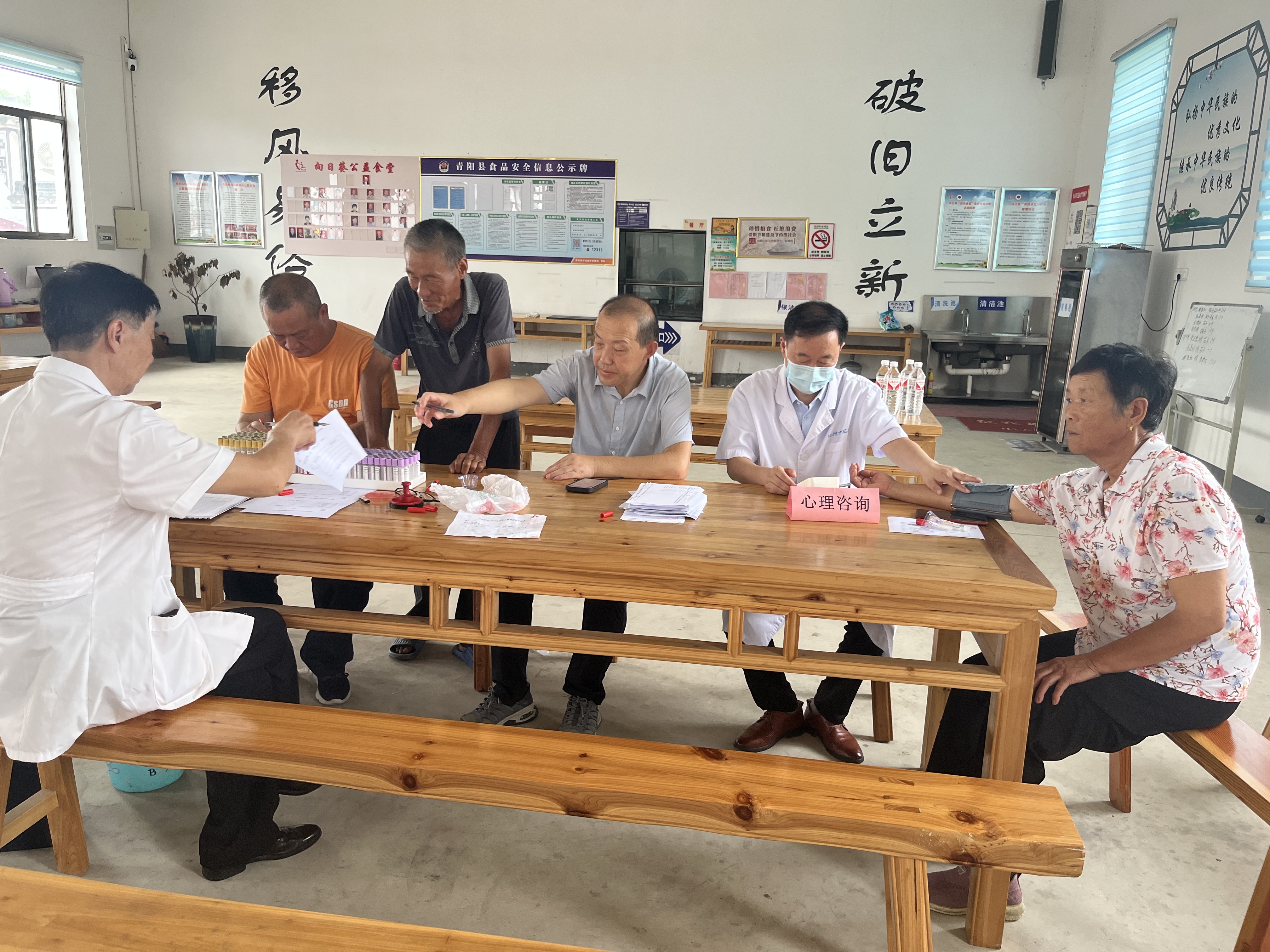 7月10上午,市三院青年衛(wèi)生志愿者一行3人,廟前鎮(zhèn)中心衛(wèi)生院醫(yī)務(wù)人員陪同下,為廟前鎮(zhèn)星星村80名65歲以上老年人免費(fèi)開(kāi)展健康體檢。
