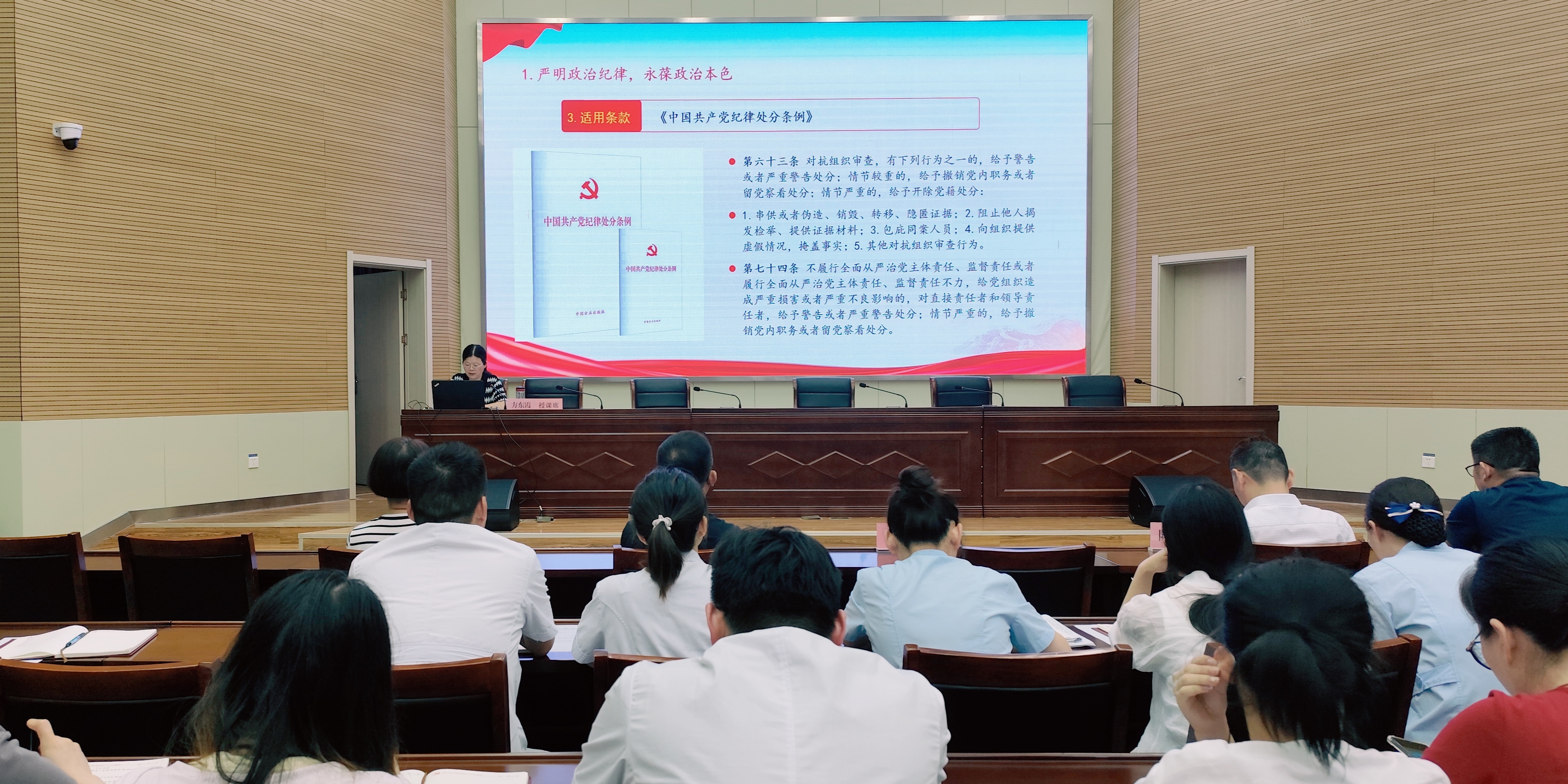 方東霞以“恪守六大紀律,爭當合格黨員”為題,通過“學理論、講案例、明黨紀”的方式,以案說德、以案說紀、以案說法、以案說責,為大家上了一堂生動的紀律黨課。她表示,黨紀學習教育以來,市三院將開展黨紀學習教育作為重要的政治任務,堅持首善標準,以《條例》學習打頭,以真抓實干落腳,通過“三抓三促”務實功、見實效,全力推動黨紀學習教育與臨床一線同頻互振,努力以清朗醫(yī)院建設扎實推動市三院高質(zhì)量發(fā)展取得新成效。