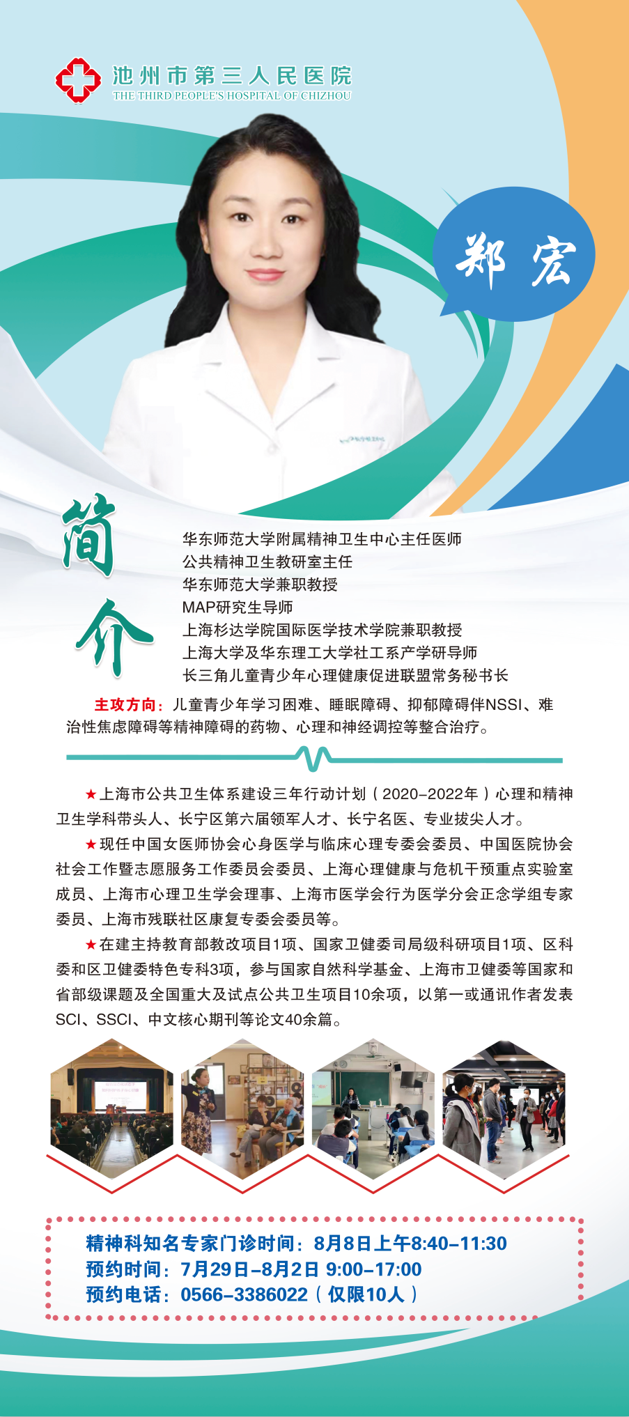 知名專家門診,8月8日華東師范大學(xué)附屬精神衛(wèi)生中心(上海市長寧區(qū)精神衛(wèi)生中心)精神科專家來我院坐診