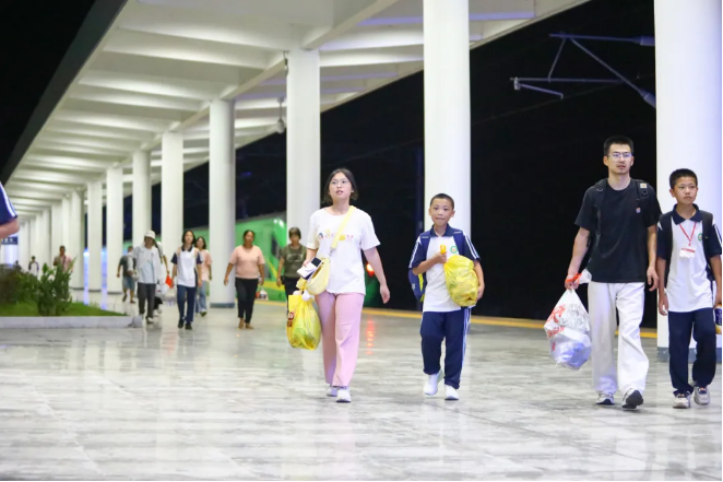 根據(jù)學(xué)校錯(cuò)峰放學(xué)時(shí)間、火車(chē)站列車(chē)開(kāi)行點(diǎn),動(dòng)態(tài)加開(kāi)6趟從各校直達(dá)火車(chē)站的公交車(chē)。實(shí)現(xiàn)火車(chē)到站時(shí)公交車(chē)已在門(mén)口等候,學(xué)生下了火車(chē)就能上公交?;疖?chē)站到學(xué)校這段距離不短的通勤得以解決