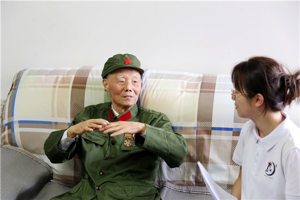 曹老飽含熱情地向團隊講述了他在抗美援朝戰(zhàn)爭中的歷程,并給大學們傳授學習和生活的奧秘。“我們當時部隊領(lǐng)導講,沒有文化的軍隊,是愚蠢的軍隊,愚蠢的軍隊是不能戰(zhàn)勝敵人的。”曹老的從軍生涯貫穿著一個主題詞:學無止境。從年少參軍開始,曹老一直在不斷學習新知識,從無名小卒到學習拼音,成為文化教員,接著被派到電廠學習電工知識,成為隊里的電力專家,再到被調(diào)至汽車制造廠,研究汽車構(gòu)造和組裝技術(shù)……在多個難度高的領(lǐng)域,曹老憑借著自己廢寢忘食的學習精神,一直在知識的高峰上攀登著。