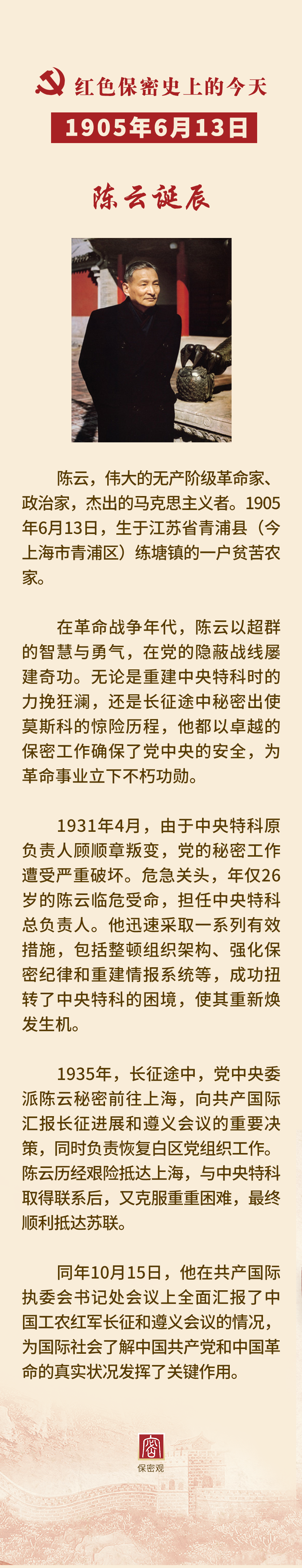 1905年6月13日| 陳云誕辰:他為黨嚴(yán)守機(jī)密,屢建奇功