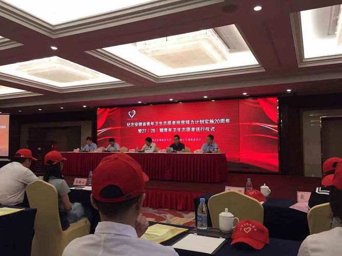 2019年8月30日,安徽省青年衛(wèi)生志愿者扶貧接力計劃實施20周年暨27、28期志愿者送行儀式在合肥舉行。來自全省各地202名青年衛(wèi)生志愿者,將奔赴全省30個基層醫(yī)療單位開展為期半年的志愿服務(wù)。我院汪榮、段小玲、陳偉三名同志參加了此次會議。
