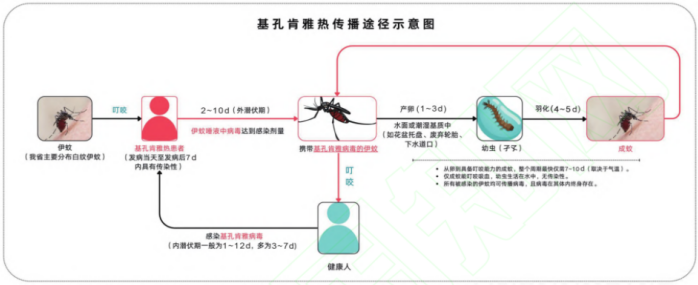 基孔肯雅熱不是通過人和人直接接觸傳播,而是依賴白紋伊蚊叮咬,實現(xiàn)人際傳播。大多數(shù)患者在發(fā)病當(dāng)天至發(fā)病后7天內(nèi)具有傳染性可發(fā)生母嬰傳播。罕見情況下可經(jīng)輸血或接觸患者血液傳播。
