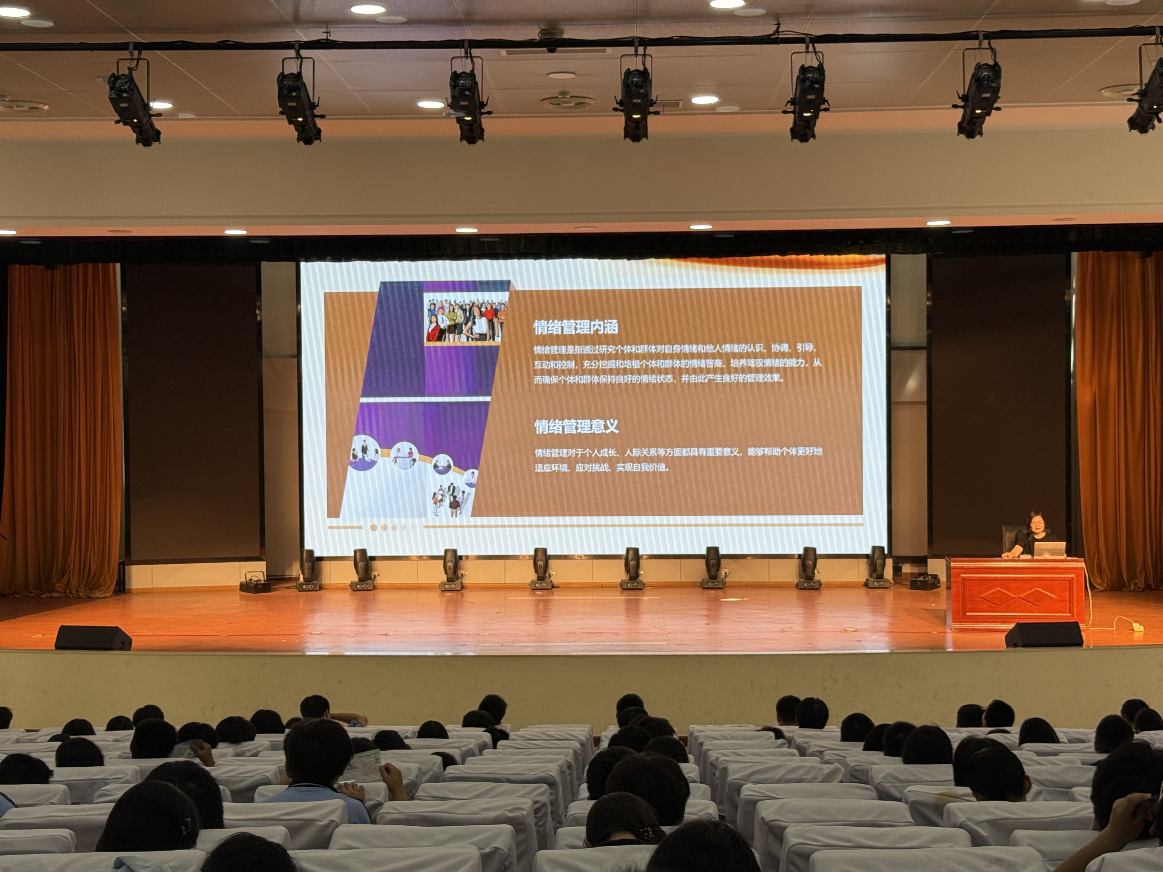 講座中,陳璐從神經(jīng)生理發(fā)育規(guī)律入手,系統(tǒng)講解了青春期情緒波動(dòng)的生物學(xué)基礎(chǔ),并結(jié)合高一新生普遍面臨的環(huán)境適應(yīng)、學(xué)業(yè)壓力及人際交往等現(xiàn)實(shí)挑戰(zhàn),通過剖析“踢貓效應(yīng)”等典型案例,引導(dǎo)學(xué)生認(rèn)識(shí)主動(dòng)管理與科學(xué)疏導(dǎo)負(fù)性情緒的重要性。此外,她還針對(duì)青少年常見的失眠、焦慮等問題,介紹了呼吸調(diào)節(jié)、認(rèn)知重構(gòu)等多種實(shí)用心理調(diào)適方法,并配合現(xiàn)場(chǎng)互動(dòng)示范,幫助學(xué)生加深對(duì)相關(guān)技巧的理解與掌握。