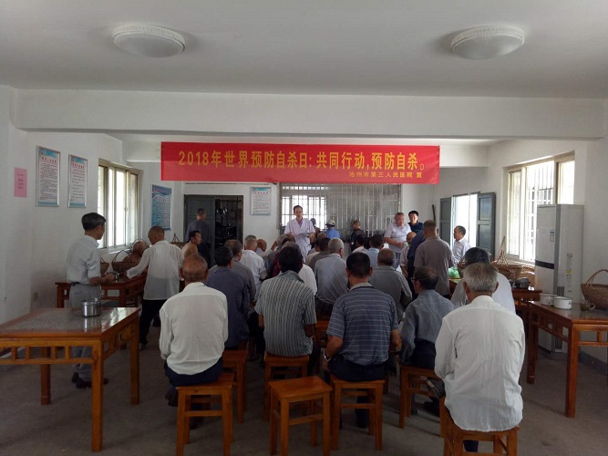 2018年第十六屆世界預(yù)防自殺日的宣傳主題是“攜手同行,預(yù)防自殺”。為了讓老年人了解誘發(fā)自殺行為的危險(xiǎn)因素,增強(qiáng)人們對(duì)不良生活事件的應(yīng)對(duì)能力。9月12日市三院精神衛(wèi)生工作人員在劉隆盛副院長(zhǎng)帶領(lǐng)下,在涓橋敬老院開(kāi)展了一次精神衛(wèi)生預(yù)防自殺宣傳活動(dòng),與敬老院老人們一起守護(hù)心靈健康。