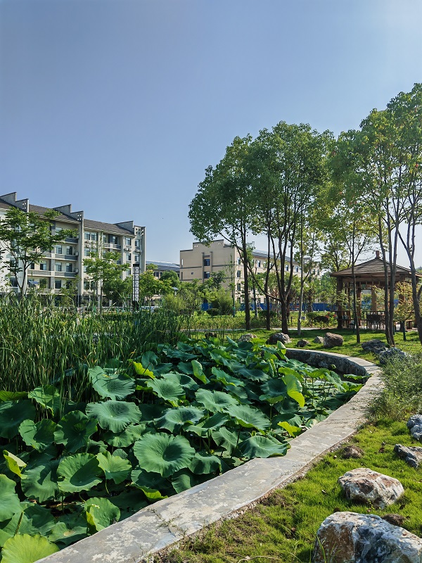 我有一個(gè)習(xí)慣,每天早中晚都要在醫(yī)院內(nèi)轉(zhuǎn)悠幾圈,一是查看環(huán)境衛(wèi)生、植物生長(zhǎng)等情況,二是今年院墻內(nèi)外各有一個(gè)工程,內(nèi)看影像樓,外看三期工程---池州市精神康復(fù)福利中心(清溪院區(qū))。當(dāng)我走到“君子池”旁邊,一股荷葉淡淡的清香撲鼻而來(lái),真是讓人流連忘返。三院的荷塘較小,我總覺(jué)得荷花比其他地方要晚一些。碧綠的荷葉挨挨擠擠的,像一個(gè)個(gè)碧綠的大圓盤,更像綠色的草帽或一張張大蒲扇。高高豎起的碧綠的荷葉就像一把把綠傘。