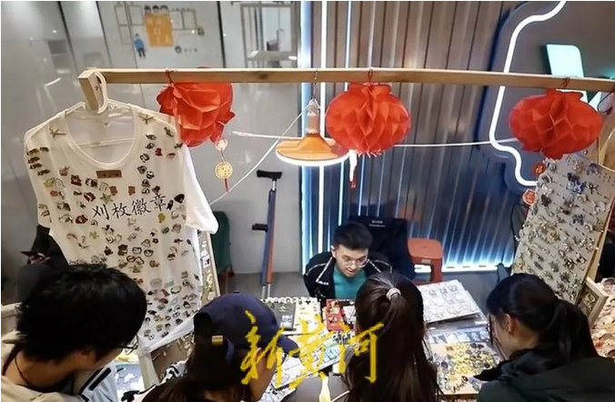熙熙攘攘的文創(chuàng)市集上牛傳磊瘦小的身影被隱藏在攤位里桌面上的金屬徽章反射著燈光不起眼的小攤便不再黯淡。