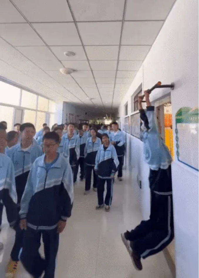 一所中學(xué)的教室門(mén)口居然“長(zhǎng)”滿了做引體向上的男生?確實(shí)是這樣的不信你看