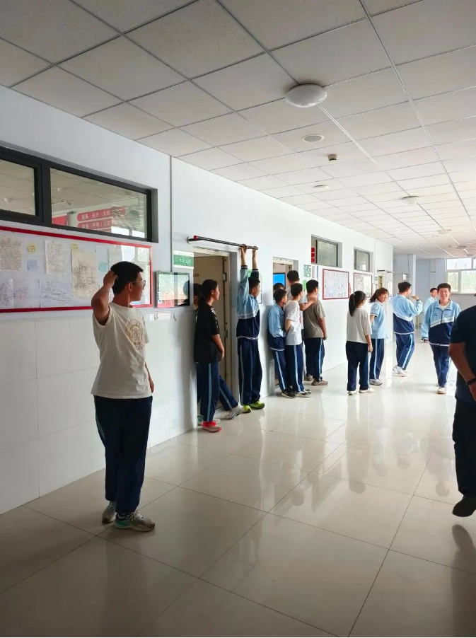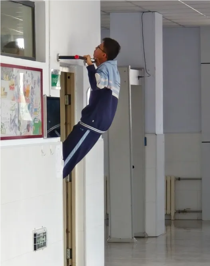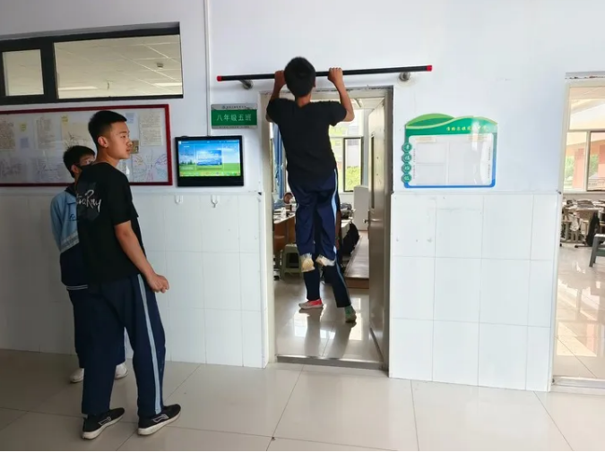 這是內(nèi)蒙古的準(zhǔn)格爾旗實(shí)驗(yàn)中學(xué)初一和初二年級(jí)的教室門(mén)口與眾不同的地方是這些教室在門(mén)框上方安裝了一根引體向上橫桿。