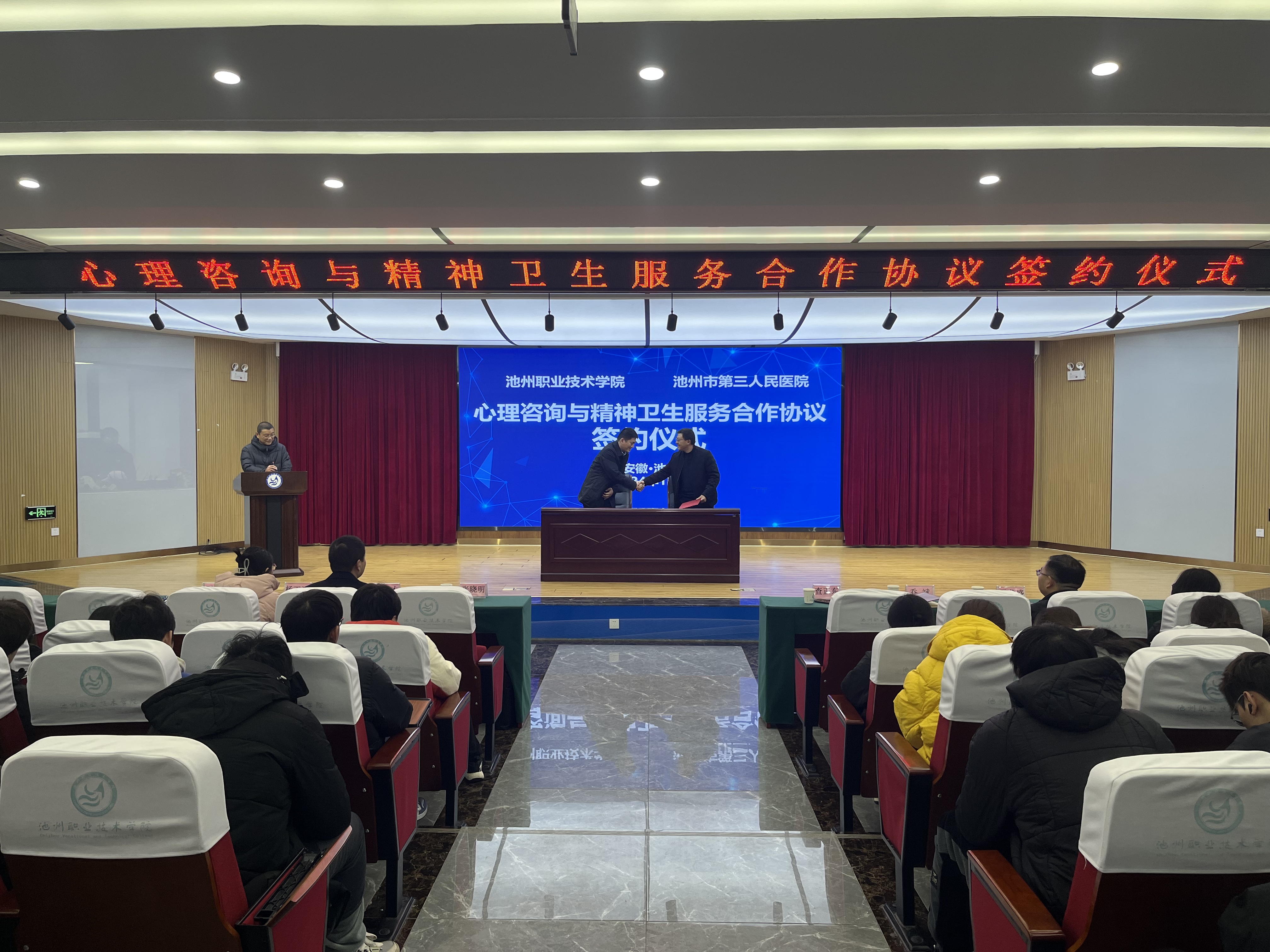 為進(jìn)一步做好高校學(xué)生的心理健康教育工作,12月11日下午,在池州職業(yè)技術(shù)學(xué)院會議中心隆重舉行心理咨詢與精神衛(wèi)生服務(wù)合作協(xié)議簽約儀式,市三院副院長張曉明、醫(yī)學(xué)心理科主任楊德才、團(tuán)委書記汪榮等人員應(yīng)邀參加。