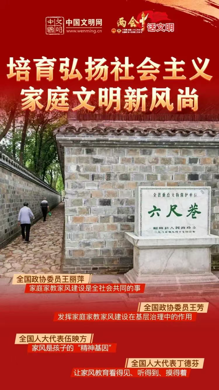 家風(fēng)是孩子的“精神基因”,也是塑造品格的根基。父母以身作則的孝善、勤儉,勝過千言說教,讓孩子在朝夕相處中自然習(xí)得責(zé)任感與道德判斷力,同時(shí)能獲得家族的歸屬感、榮譽(yù)感,從而在人生的道路上知敬畏、懂規(guī)矩。家風(fēng)家教對營造和諧穩(wěn)定的社會(huì)氛圍有著不可替代的作用。讓年輕一代感悟中華優(yōu)秀傳統(tǒng)文化中的家風(fēng)內(nèi)涵,從生活場景中尋找切入點(diǎn),日常談家訓(xùn)、節(jié)日傳習(xí)俗,讓優(yōu)良的家規(guī)家書、祠堂的匾額故事成為年輕人文化記憶的一部分。